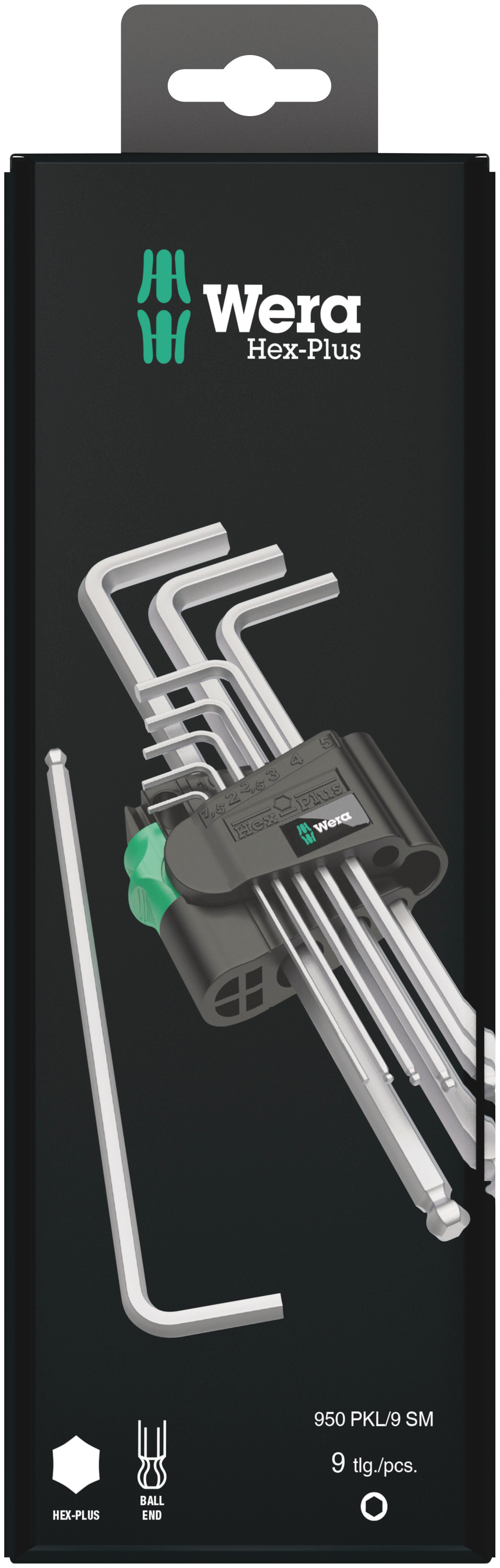 Wera 950/9 Hex-Plus 6 SB Zestaw kluczy trzpieniowych z kulką, BlackLaser, metrycznych, w opakowaniu z zawieszką