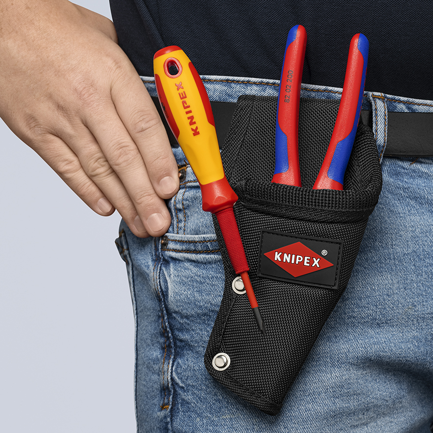 Nadaje się również do noży uniwersalnych KNIPEX CutiX® lub podobnych smukłych narzędzi, takich jak szczypce do prac elektroinstalacyjnych, szczypce chwytające czołowe KNIPEX TwinGrip itp.