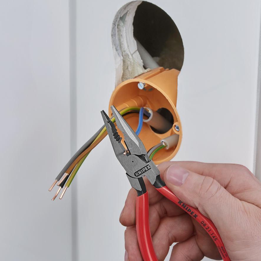 Strona główna » Szczypce uniwersalne » Szczypce uniwersalne z ostro zakończonymi szczękami » Knipex 08 21 145 Szczypce uniwersalne z ostro zakończonymi szczękami
