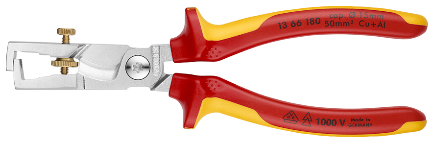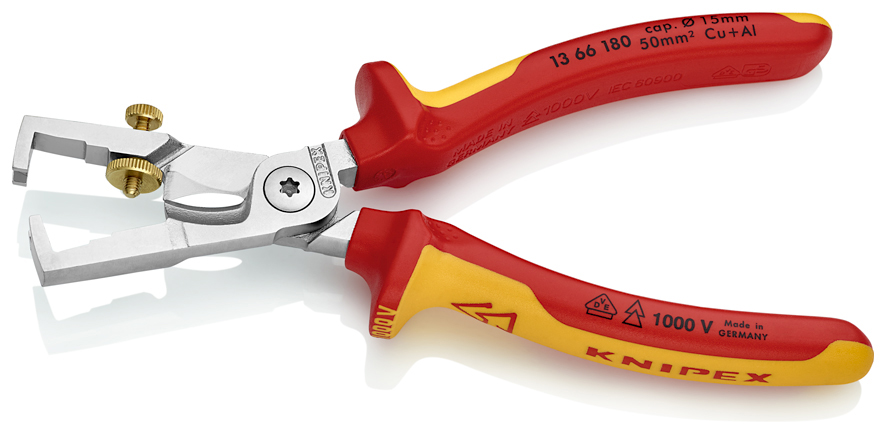 Strona główna » Narzędzia z zabezpieczeniem przed upadkiem » Knipex 13 66 180 StriX Szczypce do usuwania izolacji z nożycami do kabli VDE