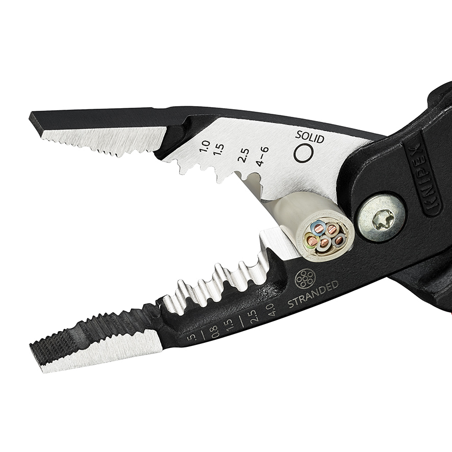 Precyzyjnie szlifowane profile do ściągania izolacji z przewodów litych od 0,75 do 6 mm² i przewodów drobnożyłowych od 0,5 do 4 mm²