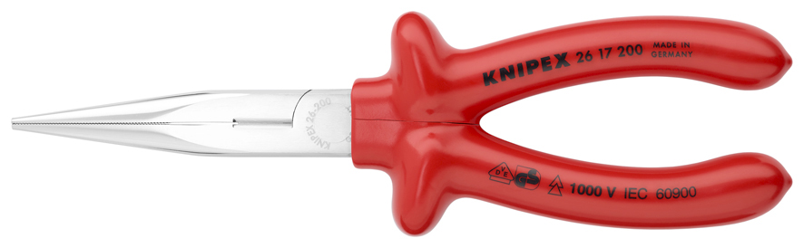 Strona główna » Szczypce chwytające » Szczypce tnące wydłużone, bociani dziób » Knipex 26 17 200 Szczypce tnące półokrągłe VDE