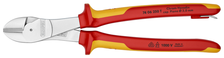 Strona główna » Narzędzia z zabezpieczeniem przed upadkiem » Knipex 74 06 250 T Szczypce tnące boczne o zwiększonym przełożeniu VDE