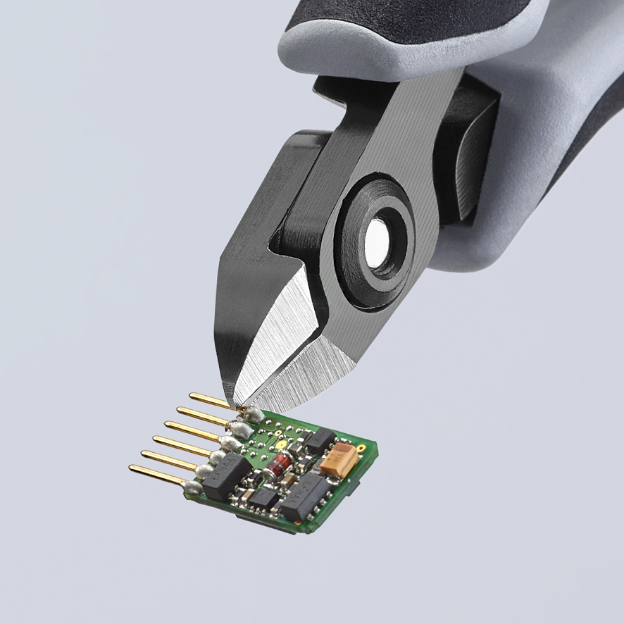 Precyzyjnie szlifowane, ostre ostrza o bardzo małych ścięciach zapewniają dokładne cięcie w pobliżu drobnych podzespołów elektronicznych; wersja bez ścięć także do cięcia płaskiego