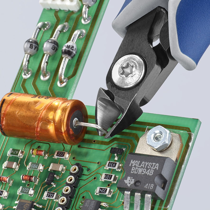 Precyzyjnie szlifowane, ostre ostrza o bardzo małych ścięciach zapewniają dokładne cięcie w pobliżu drobnych podzespołów elektronicznych; wersja bez ścięć także do cięcia płaskiego