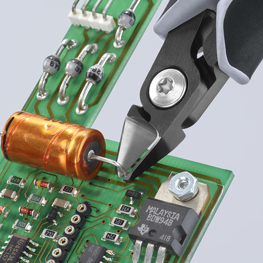Precyzyjnie szlifowane, ostre ostrza o bardzo małych ścięciach zapewniają dokładne cięcie w pobliżu drobnych podzespołów elektronicznych; wersja bez ścięć także do cięcia płaskiego