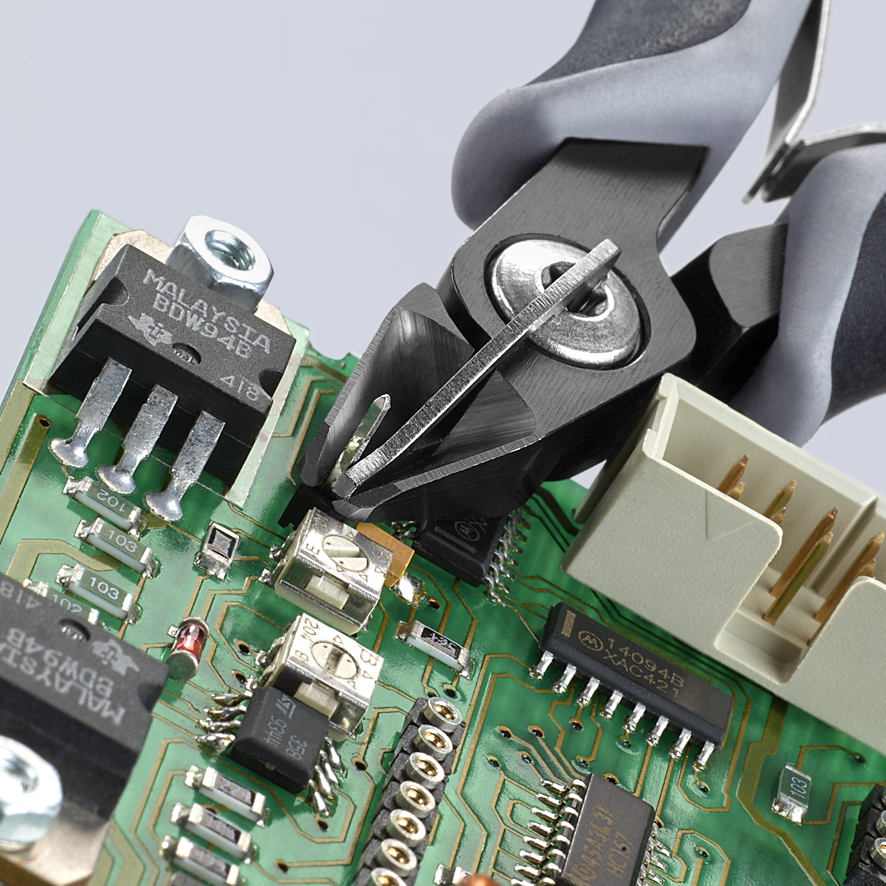 Precyzyjnie szlifowane, ostre ostrza o bardzo małych ścięciach zapewniają dokładne cięcie w pobliżu drobnych podzespołów elektronicznych; wersja bez ścięć także do cięcia płaskiego
