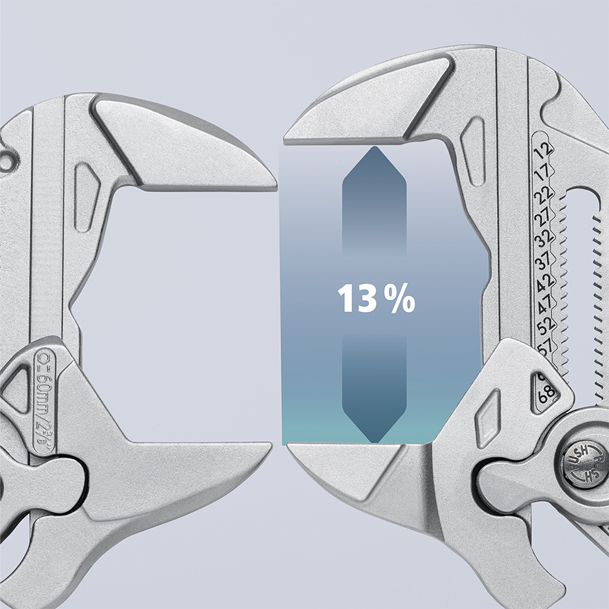 Jeśli to konieczne, gładkie szczęki chwytają z dużą siłą wszystkie równoległe powierzchnie w zakresie swojego chwytu, zapewniając szczypcom niemal nieograniczone możliwości zastosowania: np. do kontrowania śrub, dociskania elementów łączonych przy użyciu klejów kontaktowych, odłamywania krawędzi przy pracach glazurniczych, rozłączania opasek zaciskowych jak również mogą być wykorzystanie jako małe imadło.