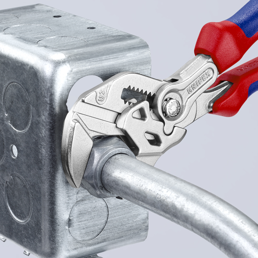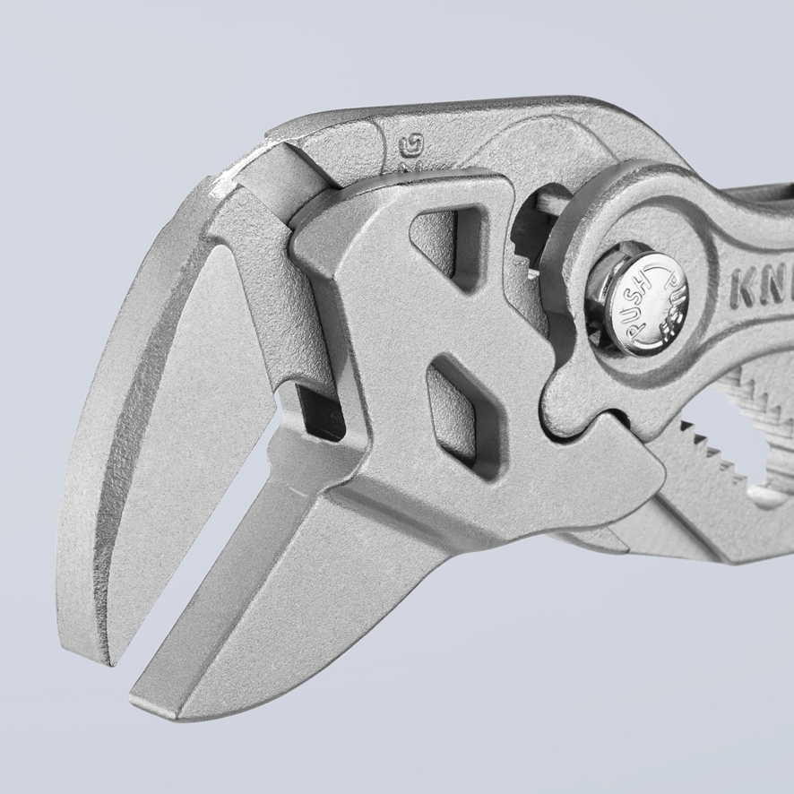 Szczypce-klucz Knipex 86 05 250 zastępuje wieloczęściowy zestaw kluczy calowych i metrycznych aż do rozmiarów 52 mm.
