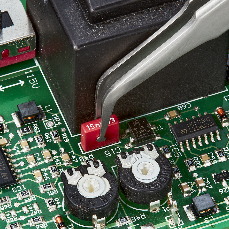 Do pracy z komponentami SMD (SMD=Surface mounted device): precyzyjna geometria pęsety SMD umożliwia również pracę z komponentami elektronicznymi, które można przylutować bezpośrednio do płytki drukowanej