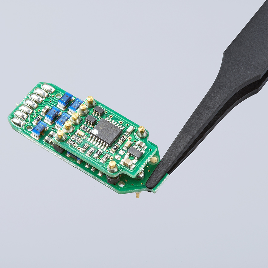 Pęseta ESD z tworzywa sztucznego idealna do maksymalnej ochrony powierzchni podczas pracy z delikatnymi elementami elektronicznymi, częściami mikro mechanicznymi, jak również elementami szklanymi i ceramicznymi