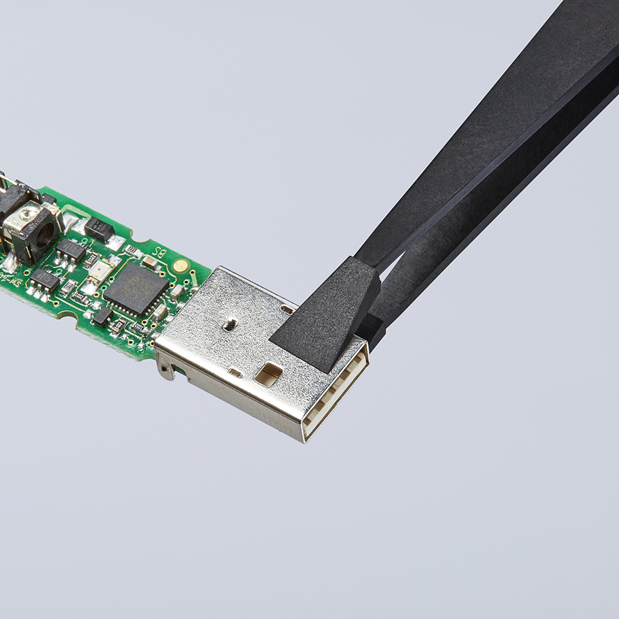 Pęseta ESD wykonana w 30% z tworzywa sztucznego wzmocnionego włóknem węglowym, charakteryzuje się wysoką przewodnością elektryczną i termiczną oraz wysoką odpornością na zużycie ścierne i zarysowania