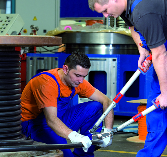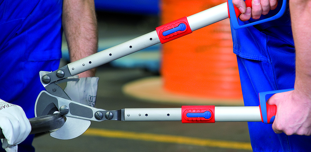 Do cięcia kabli o średnicy do 38 mm, regulowany kąt ustawienia ramion umożliwia optymalną regulację szerokości uchwytu, idealny zwłaszcza do pracy w trudno dostępnych miejscach