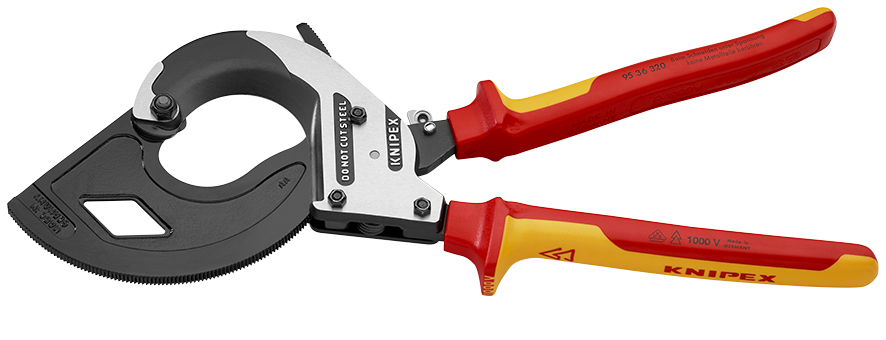 Strona główna » Nożyce do kabli i lin stalowych » Nożyce do kabli » Knipex 95 36 320 Nożyce do kabli (trójstopniowy mechanizm zapadkowy) VDE