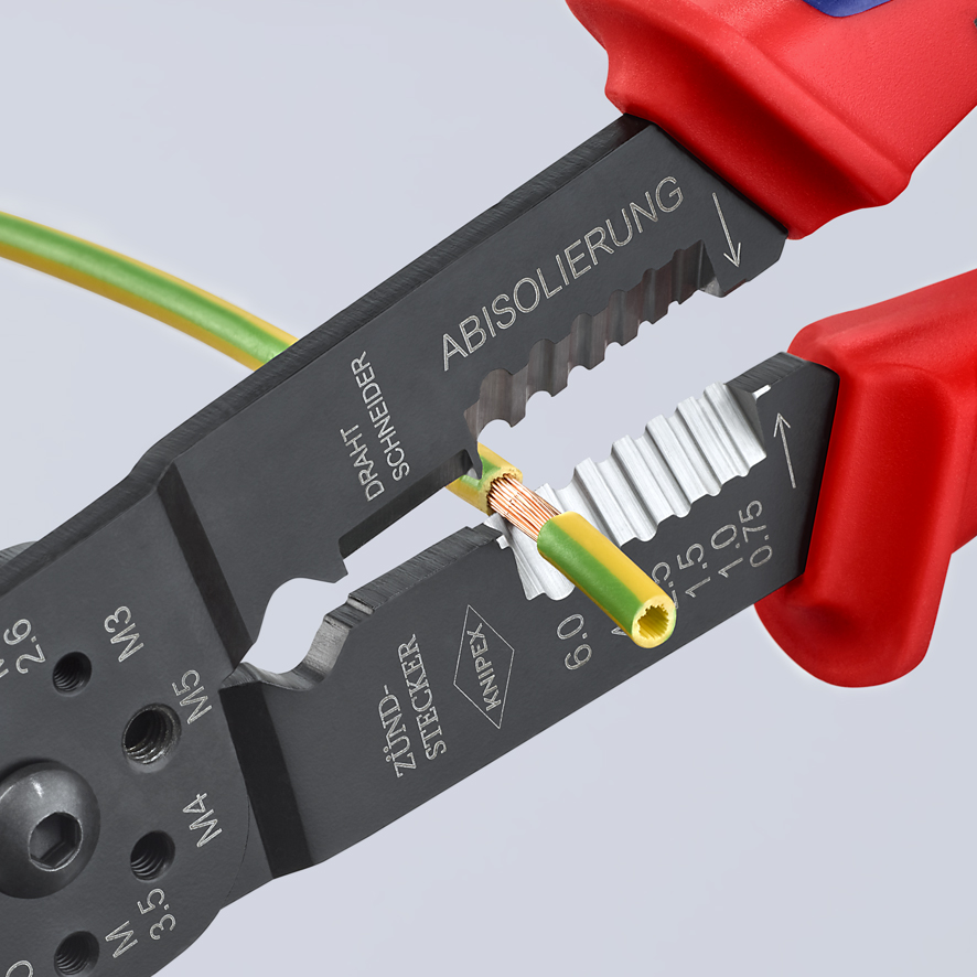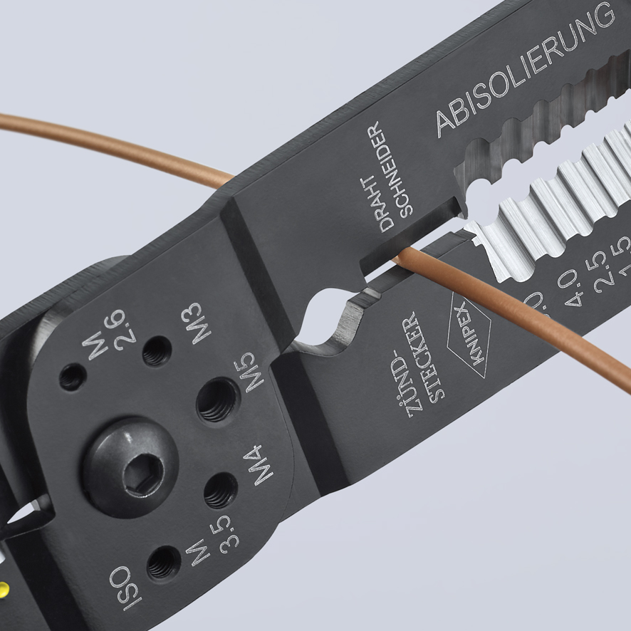 Do cięcia i odizolowywania przewodów, a także zagniatania izolowanych i nieizolowanych końcówek kablowych oraz styków wtykowych