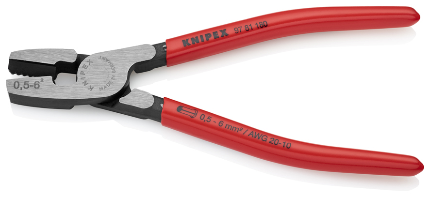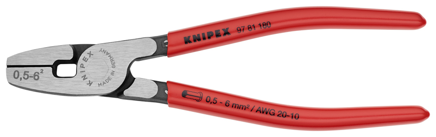 Strona główna » Szczypce do zagniatania » Szczypce do zagniatania tulejek kablowych z ładowaniem od czoła » Knipex 97 81 180 Szczypce do zagniatania tulejek kablowych
