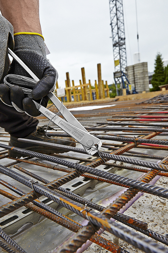 Obcęgi zbrojarskie o zwiększonym przełożeniu Knipex 99 14 300 zostały wykonane ze specjalnej stali narzędziowej wysokiej jakości, kutej i hartowanej wielostopniowo w kąpieli olejowej. Dodatkowo hartowane ostrza osiągają twardość około 61 HRC. Obcęgi są przeznaczone do mocowania prętów zbrojeniowych za pomocą drutu wiązałkowego, pozwalają na skręcanie i obcinanie drutu w jednej operacji. Obcęgi dzięki smukłemu kształtowi umożliwiają łatwe operowanie w trudno dostępnych elementach zbrojenia.