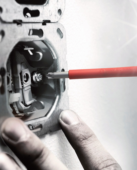 Do prac przy instalacjach elektrycznych pod napięciem używaj wyłącznie izolowanych narzędzi i narzędzi z odpowiednimi symbolami IEC/VDE i GS. Podczas korzystania z narzędzi z izolacją VDE nigdy nie przekraczaj określonych maksymalnych napięć. Nie wystawiaj narzędzi na działanie ekstremalnych warunków, takich jak wysokie lub niskie temperatury, które mogłyby zmienić właściwości materiału lub przydatność narzędzi. Nigdy nie zmieniaj (skracaj) istniejącej izolacji narzędzia.