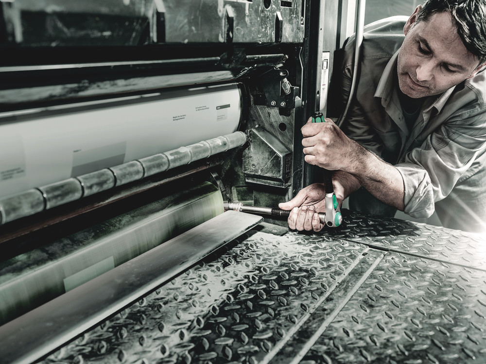Używaj wyłącznie kluczy o odpowiednich rozmiarach z odpowiednimi akcesoriami (np. nasadkami, nasadkami do końcówek) do określonego rozmiaru łba śruby lub nakrętki. Zawsze używaj odpowiedniej grzechotki w stosunku do oczekiwanego momentu dokręcania lub odkręcania. Długie dźwignie, zwłaszcza pomocnicze, mogą powodować poślizgnięcia i obrażenia.