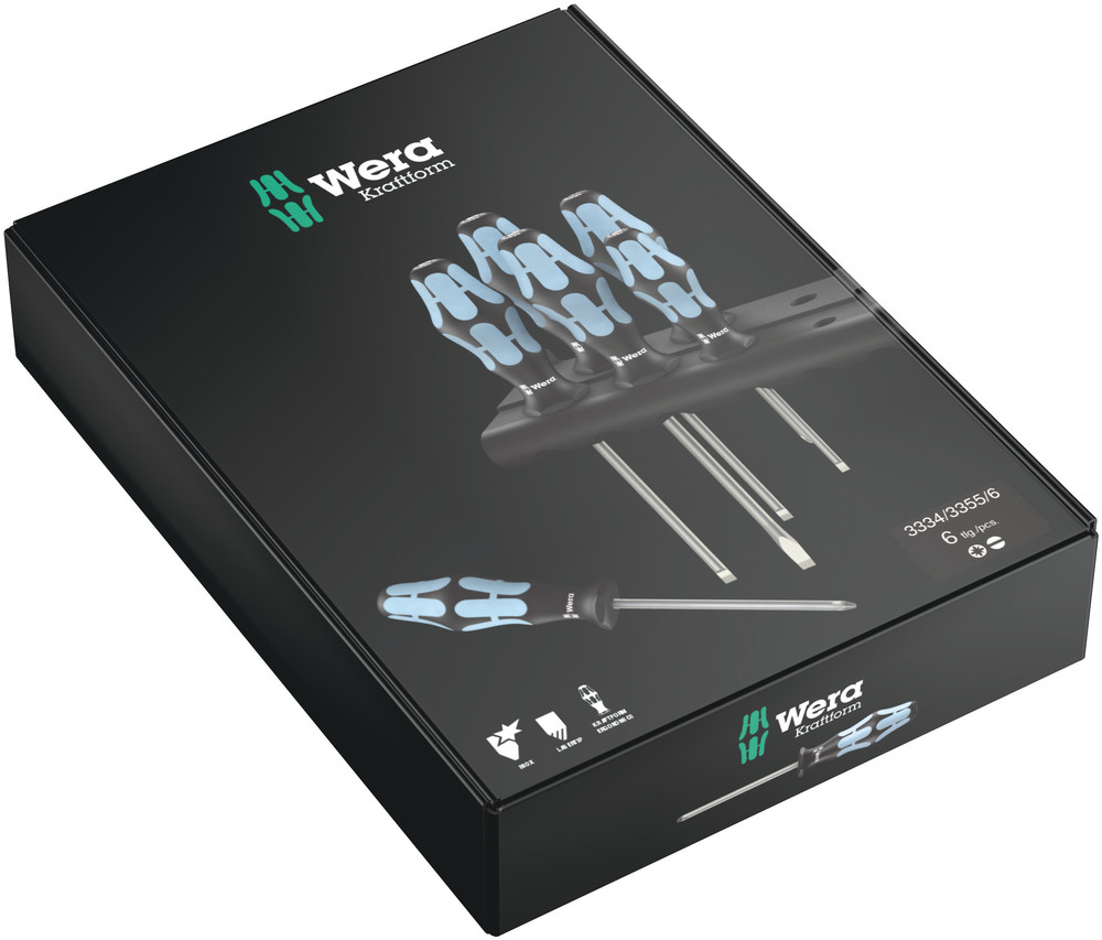 Wera 3334/3355/6 Zestaw wkrętaków ze stali nierdzewnej + wieszakWera 3334/3355/6 Zestaw wkrętaków ze stali nierdzewnej + wieszak
