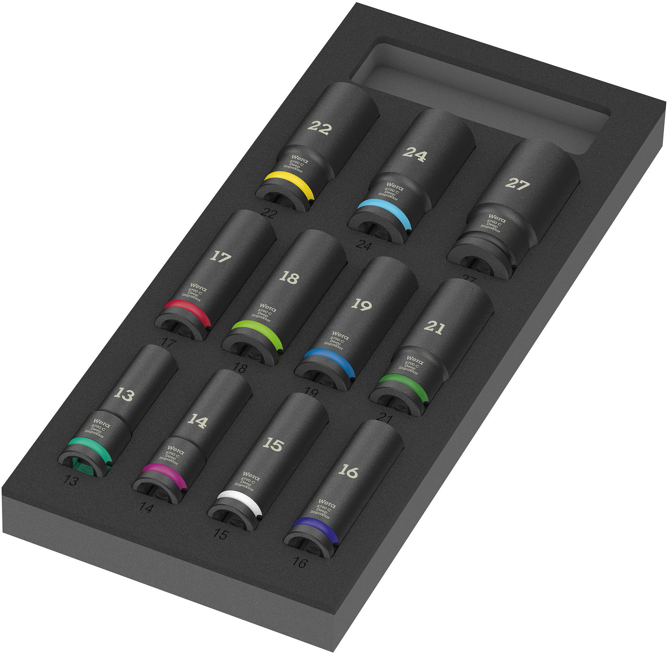 Wera 150115 Wkładka piankowa 9725 Zyklop C, 1/2", zestaw kluczy nasadowych Impaktor Deep, Set 1, 11 części